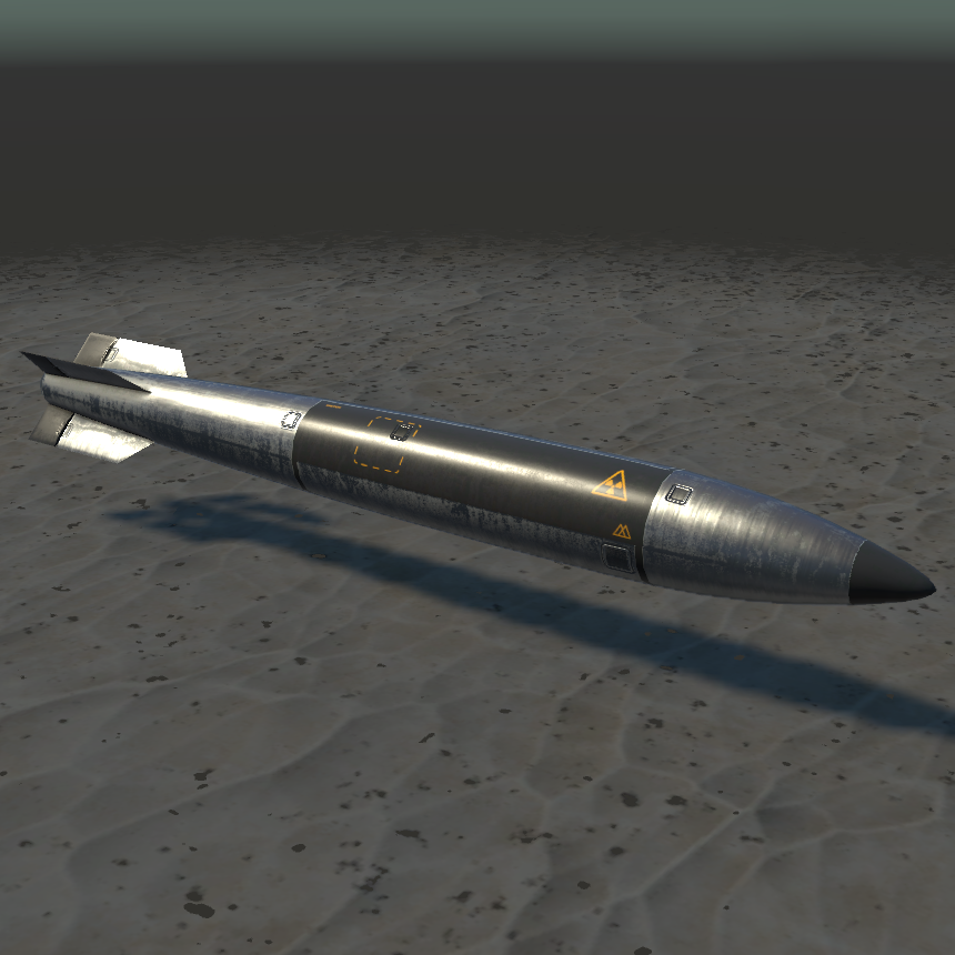 The 1.5kt Nuclear bomb is a free-fall Air-to-Ground bomb that is used for targeting and destroying large areas of ground targets. While weaker than the 20kt Cruise Missile, it is harder to shoot down; Since the bomb has no heat signature, it can only be shot down by radar missiles.